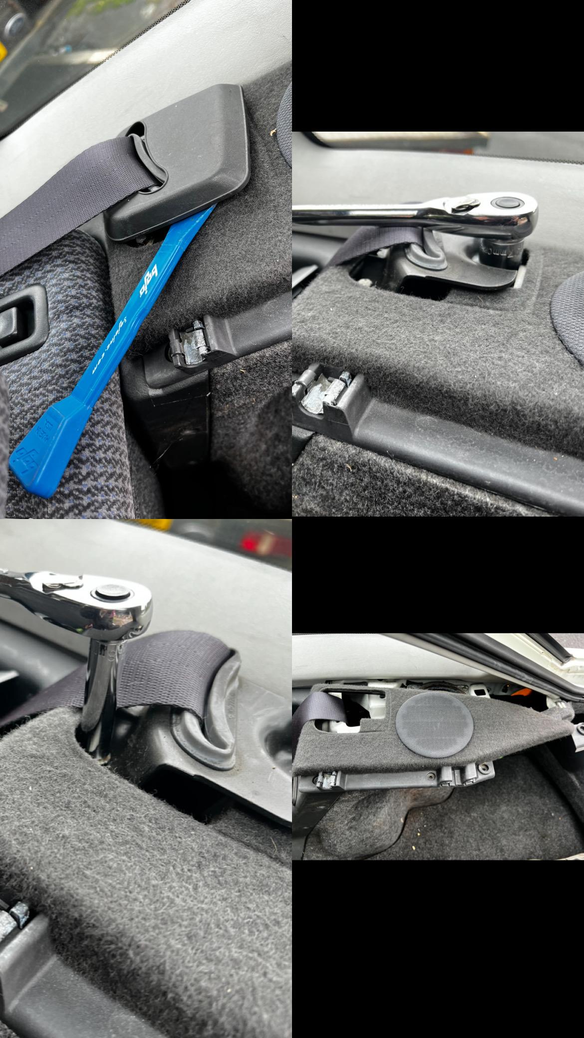 There you will see a 17mm bolt and a 8mm nut that you need to remove to undo the seatbelt runner/guide? This will then give you access to slide the plastic shelf covering the speaker off.